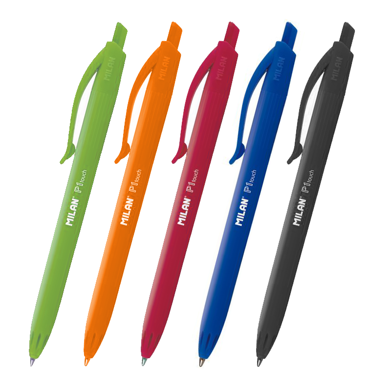 Bolígrafo P1 touch azul, con el cuerpo del mismo color que la tinta.
